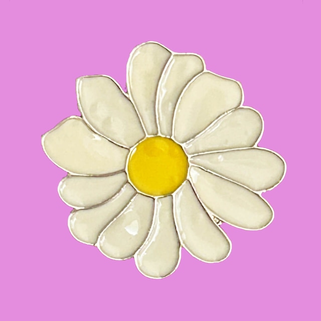 マーガレットのピンバッジ。 サイズ:H 約3cm W 約3cm ▼下記、ご理解、ご了承の上ご購入ください。 ※商品写真は実物のお色に近くなるように徹底しておりますが、モニター・照明など環境のちがいにより色味が多少異なる場合がございます。 ※気になる点がございましたらご購入前にお気軽にお問い合わせください。